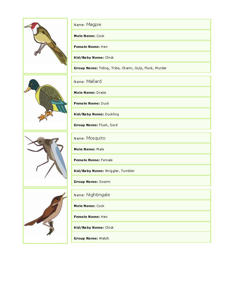 names bird birds english animals collective nouns urdu learn pdf meaning words